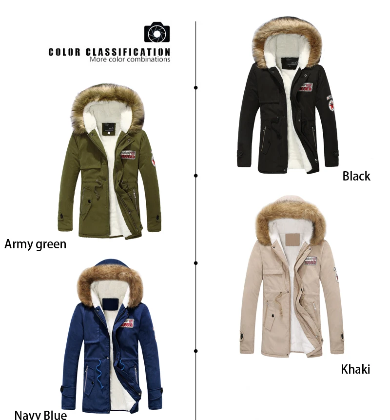 Parka Men Coats Winter Jacket Slim Thicken Fur Hooded Outwear Warm Cotton Parkas Zipper Winter Mens Parka Winter Coat for Men