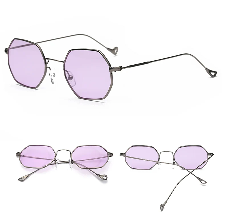 Peekaboo polygon clear pink sunglasses women small frame vintage round metal frame sun glasses male 2017 uv400 mirror.