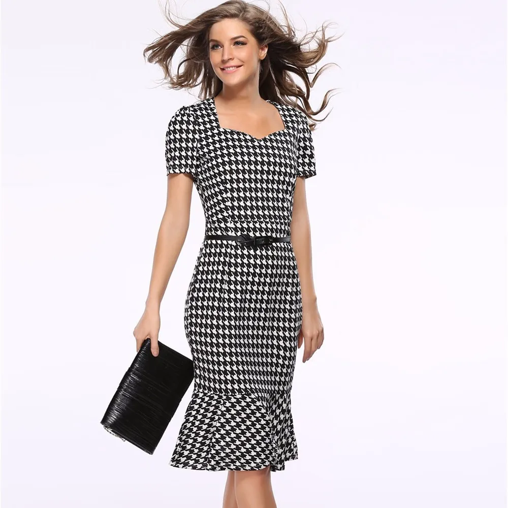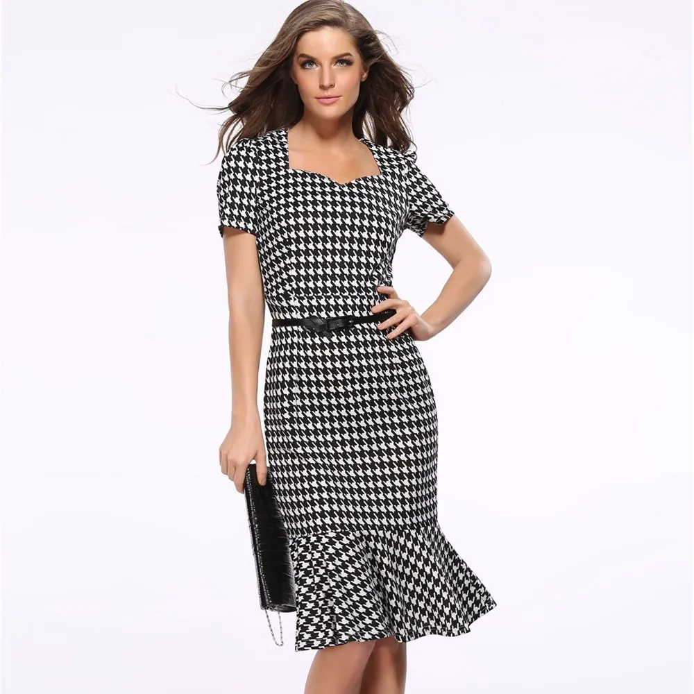 Pencil Dress Plaid Print Big Size Evening Party Clothes Women Dress Vestidos Vintage Bandage Summer Bodycon Work Office Dress