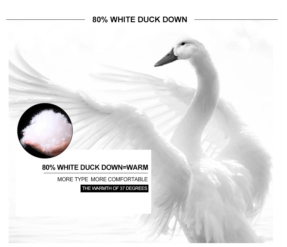 Gender: Men;Sleeve Length(cm): Full;Thickness: Standard;Weight: 1.1kg;Lining Material: Polyester;Style: Casual;Closure Type: Zipper;Filling: White duc…