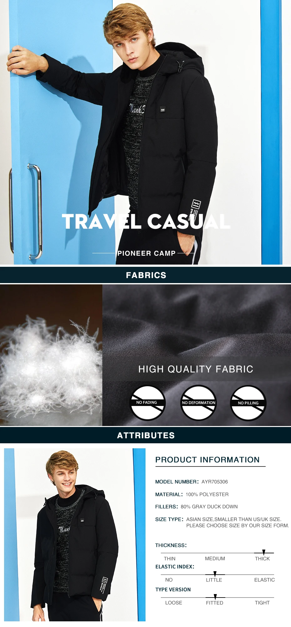 Pioneer Camp hooded winter warm down jacket men brand clothing fashion thick duck down coat male quality grey black AYR705306