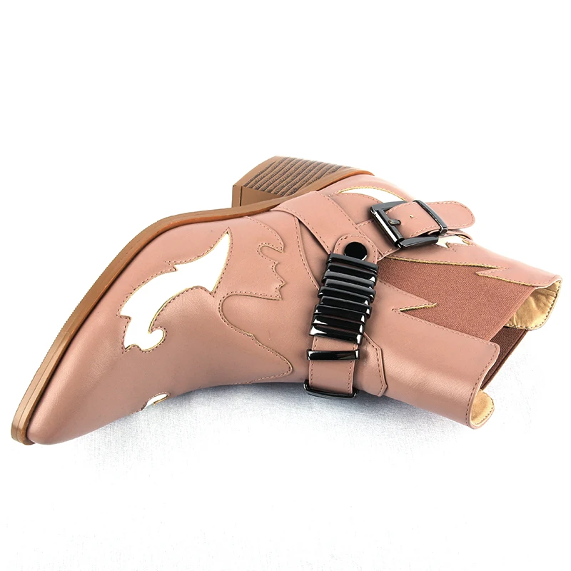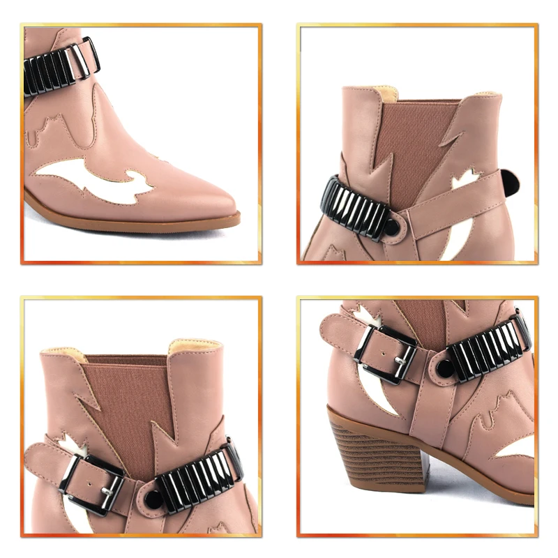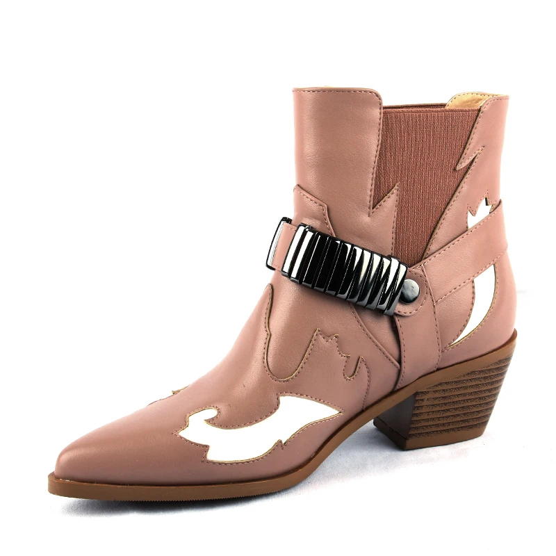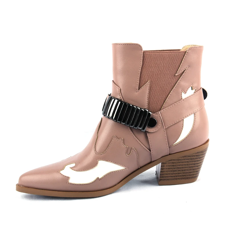 Pointed Toe Western Pink PU Leather Women Ankle Boots