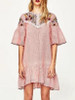 Popular Fashion Inwrought Stripes Half Sleeve Round Neck Mini Dress