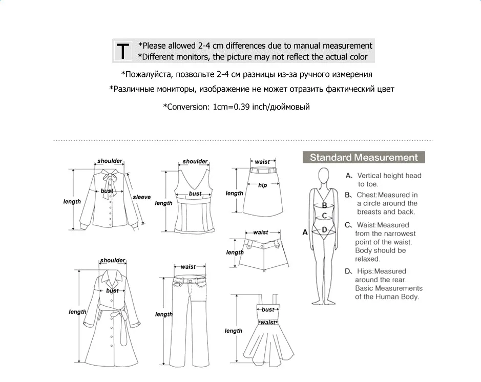 Size: please allow 2-3cm differs due to manual measurement, thanks (All measurement in cm and please note 1cm=0.39inch)