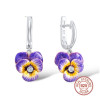 Purple and Yellow Flower CZ Stone Ring Earrings Pendent Necklace 925 Sterling Silver Women Jewelry Set