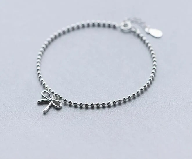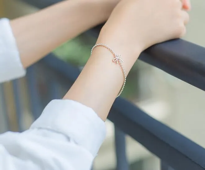 Real. 925 Sterling Silver jewelry Bowknot &Beads chain bracelet sterling-silver-jewelry adjustable GTLS255