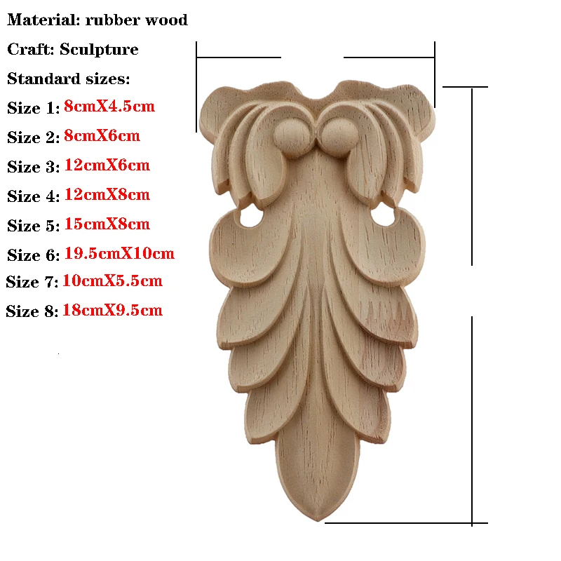 Retro Vintage Wood Carved Onlay Applique Carpenter Frame Decal Furniture Decoration Wooden Craft Decorative Gate Flower Ornament