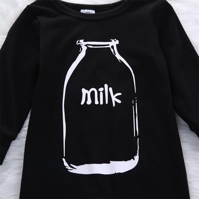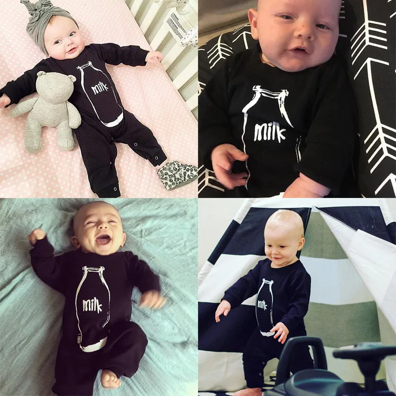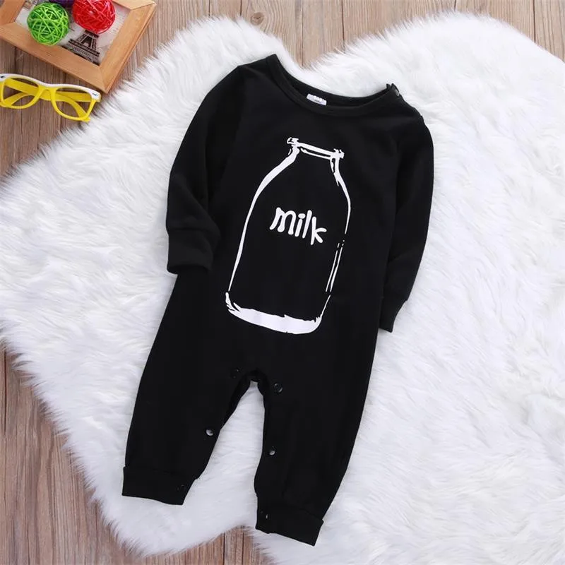 Newborn Infant Baby Boys Girl Kids Clothes Cotton Rompers Jumpsuit Long Sleeve Milk Bottle Clothing Outfit Baby Girl Boy