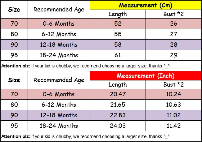 Size Chart:
