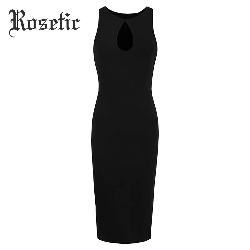 Gender: Women;Dresses Length: Knee-Length;Pattern Type: Solid;Brand Name: Rosetic;Decoration: Hollow Out;Sleeve Length(cm): Sleeveless;Silhouette: She…