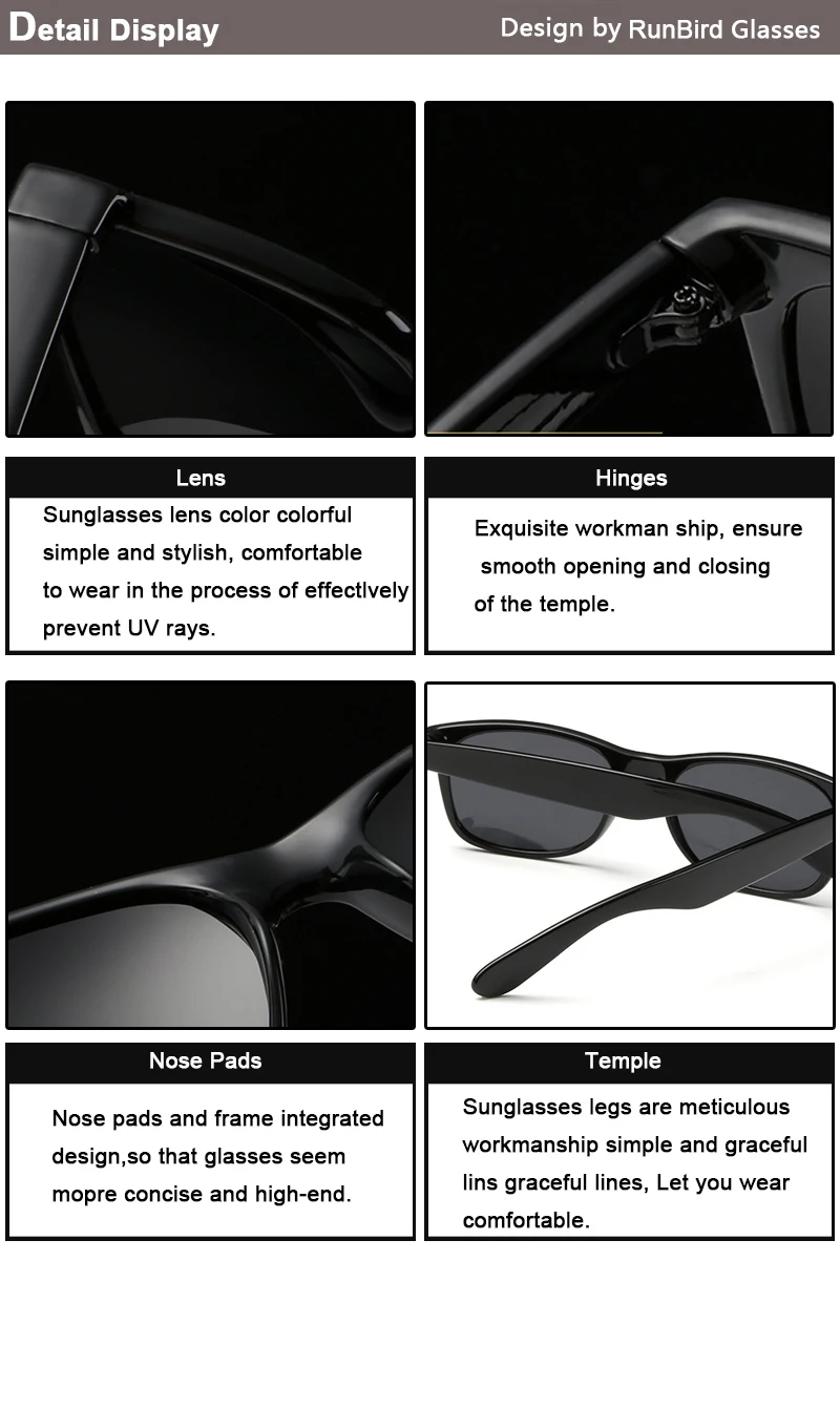 RunBird Unisex Fashion Polarized Sunglasses Man Classic Brand Rivets Design Men Women Retro Sun Glasses Gafas Oculos R041