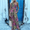 Sexy Sleeveless One Shoulder Print Slim Casual Vacation Maxi Dress