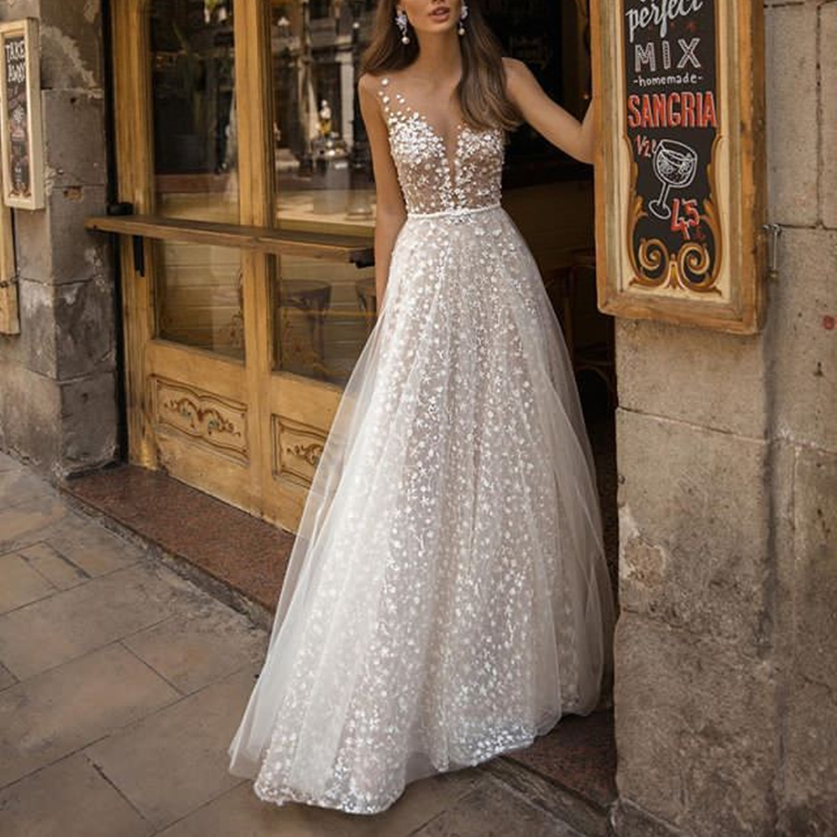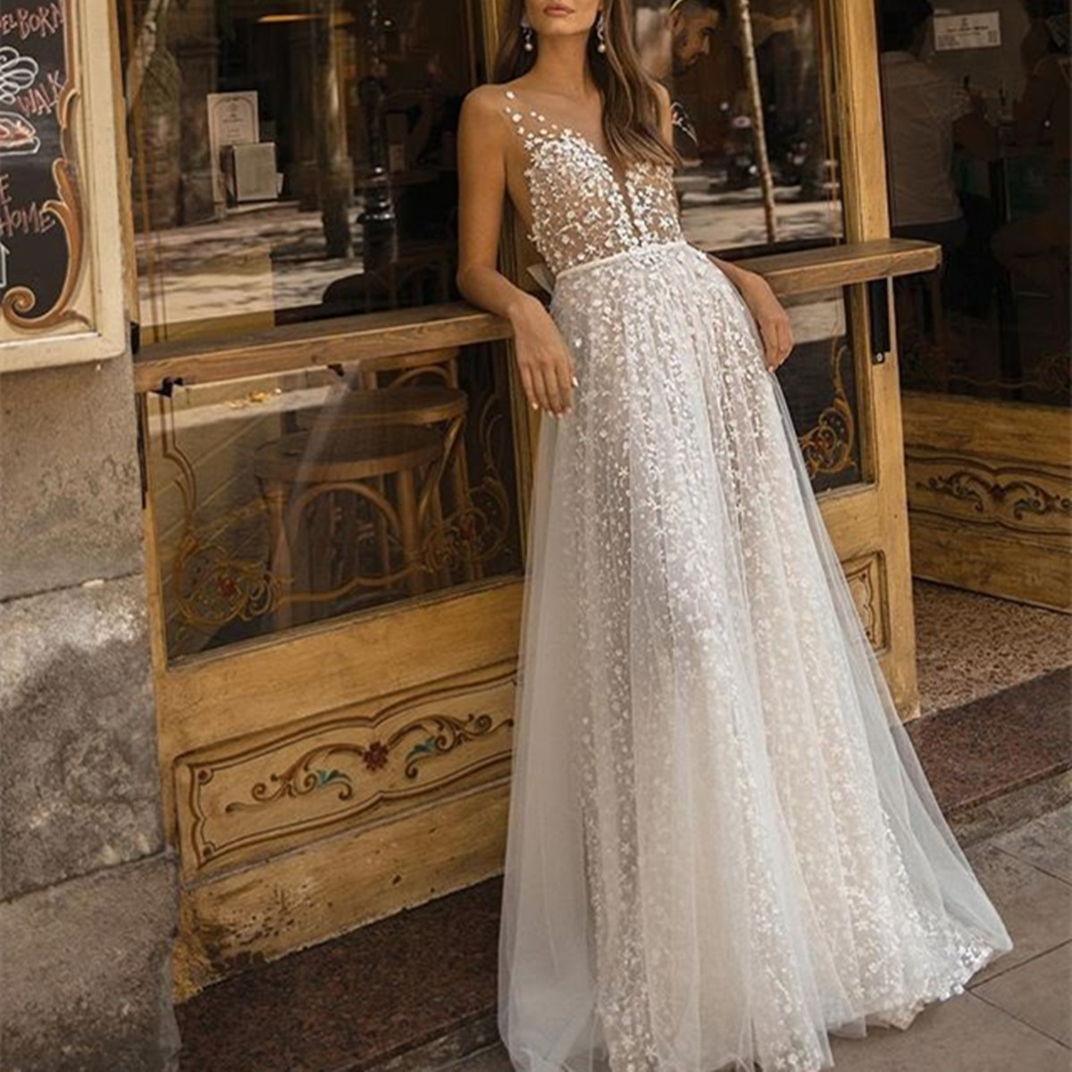 Sexy V-Neck Perspective Evening Dress