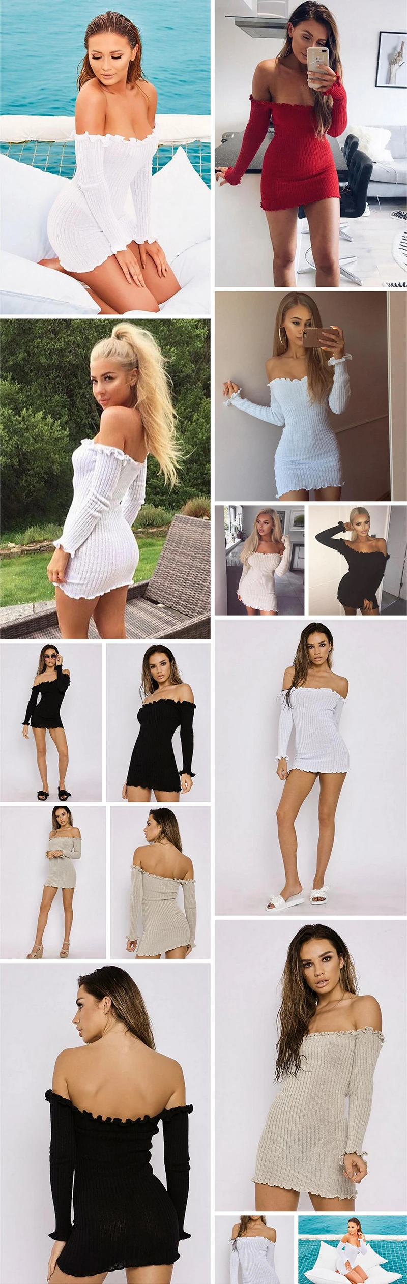 Gender: Women;Sleeve Length(cm): Full;Sleeve Style: Off the Shoulder;Decoration: Hollow Out;Model Number: Bodycon Dress;Pattern Type: Solid;Dresses Le…