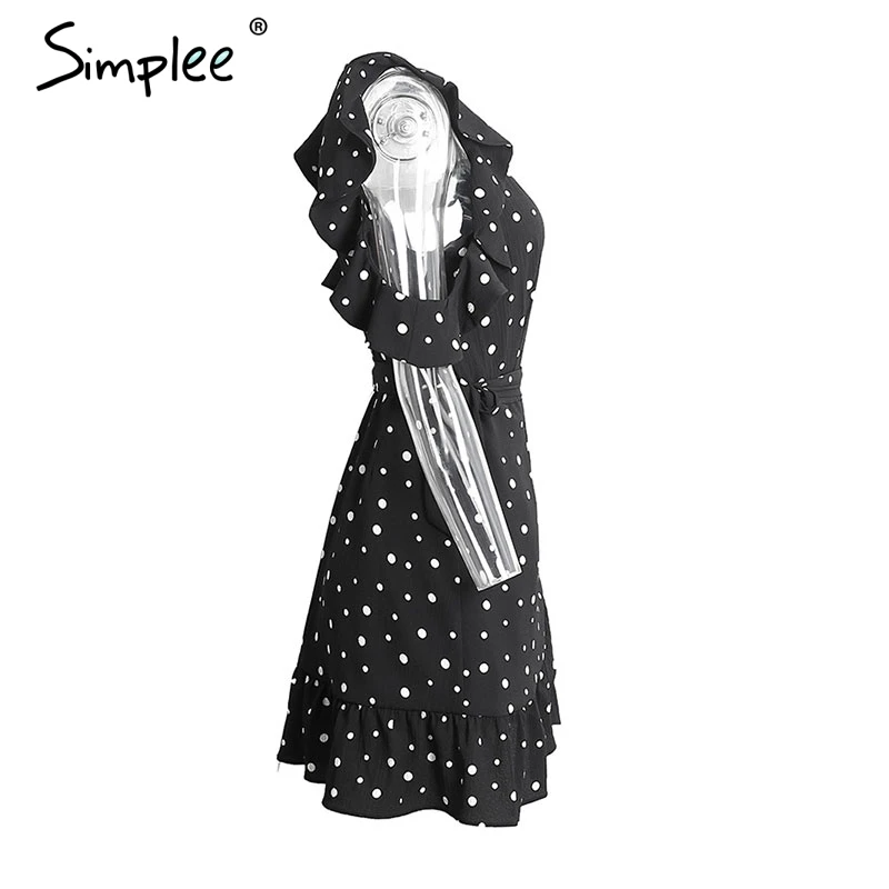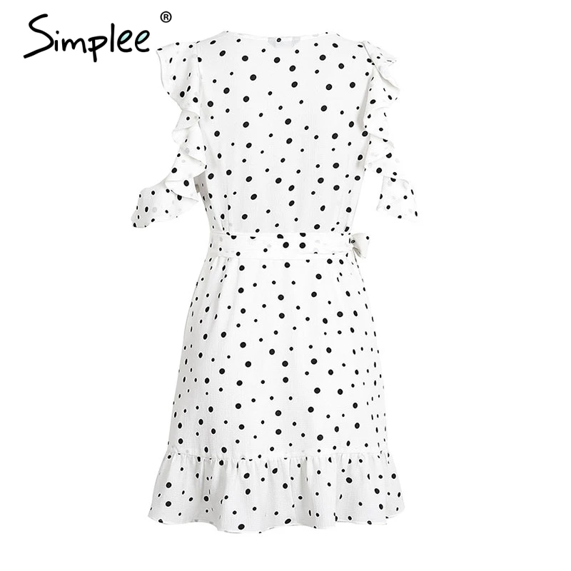 Simplee Ruffle cold shoulder dot print summer dress Vintage irregular bow short dress Women elegant chiffon white dress vestidos