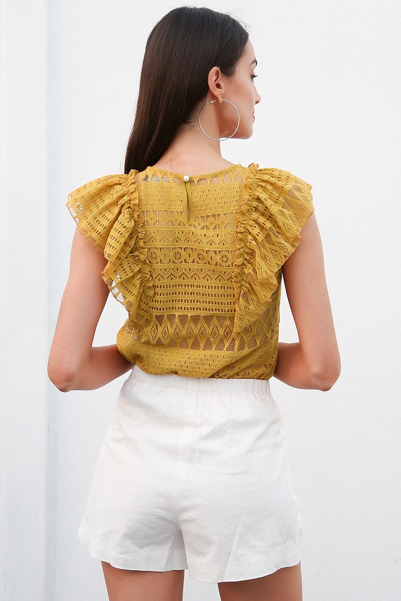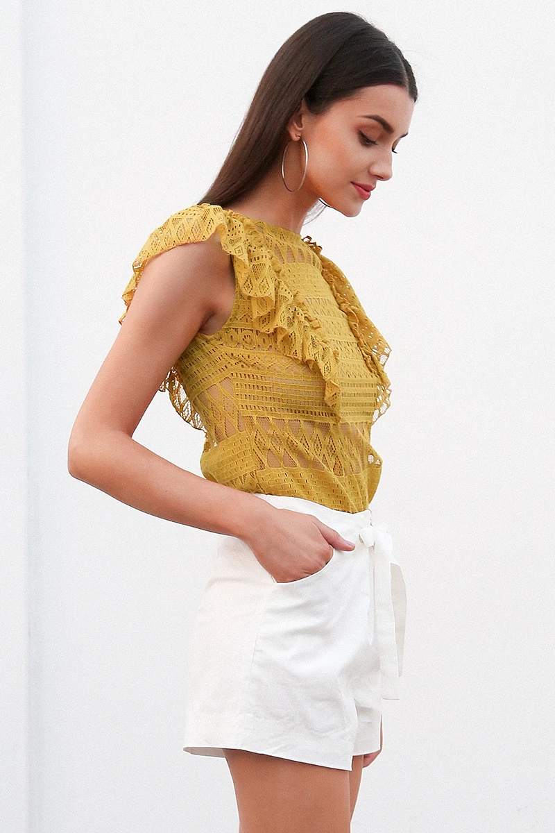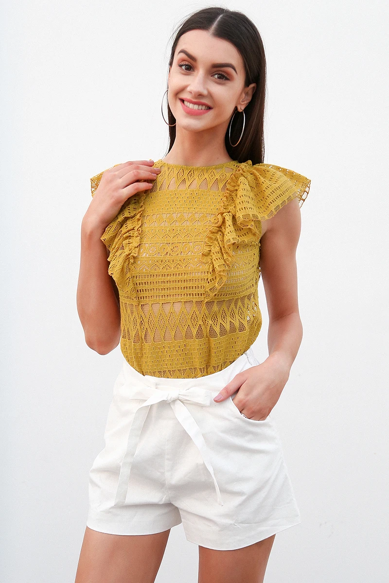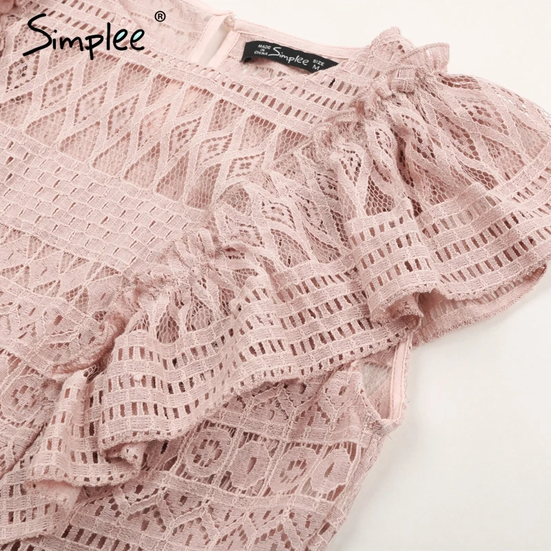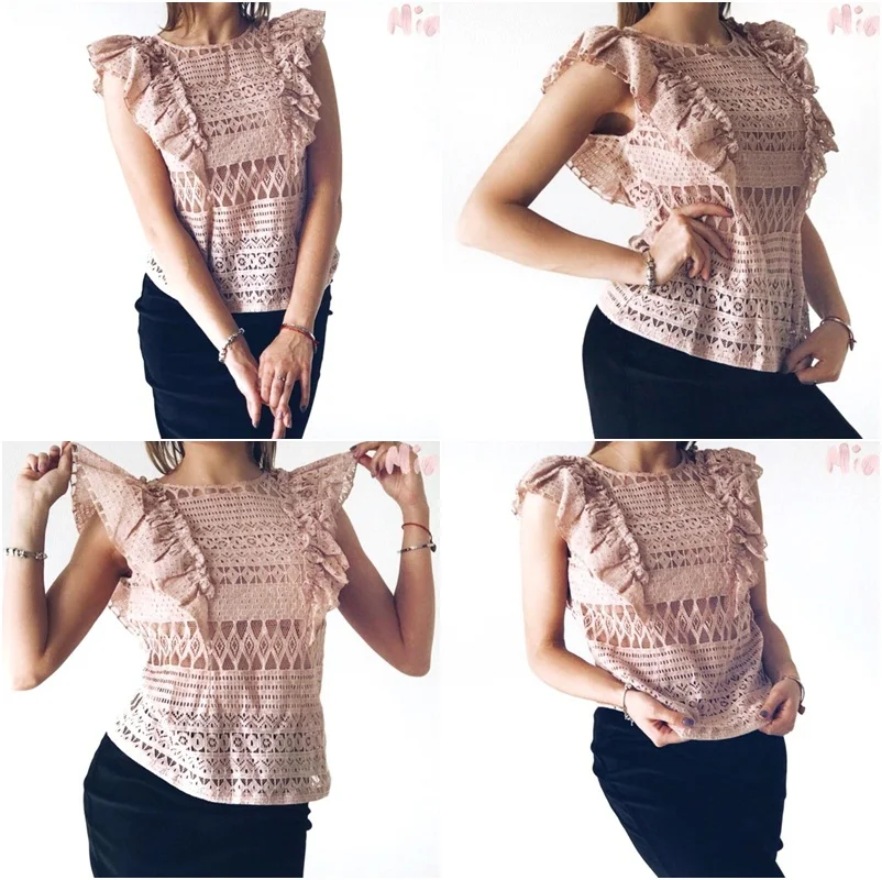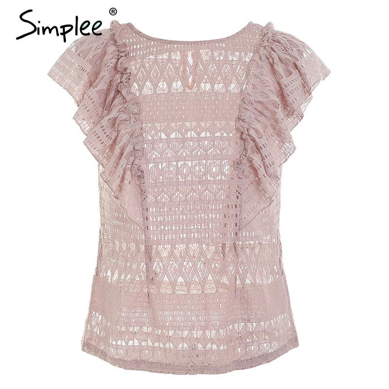 Simplee Sexy sleeveless ruffle lace blouse women O neck transparent white blouse shirt 2018 Elegant summer blusa feminian top