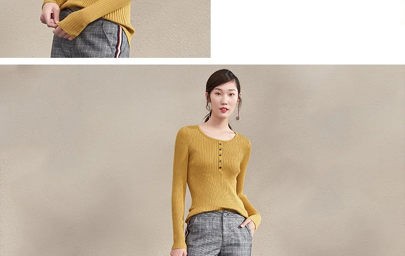 Sllsky 2017 Winter New Button O-Neck Pullover Women Sweater Long Sleeve Office Lady Basic Slim Knitted Sweaters Woman 193LA348