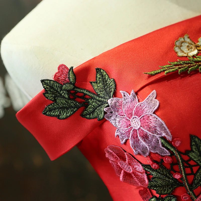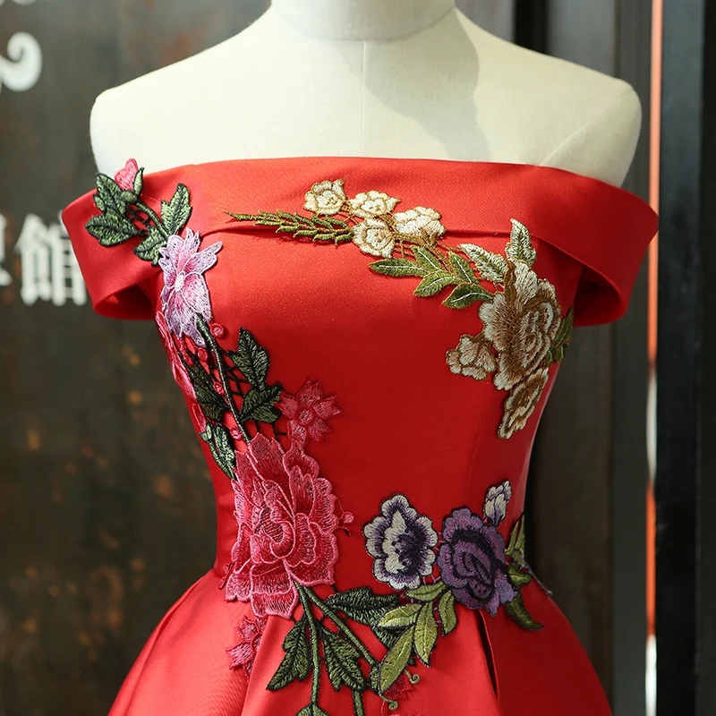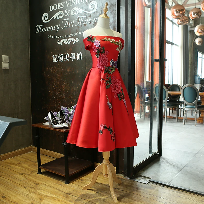 SOCCI Red Cocktail Dress New Boat Neck Tea-length Formal Wedding Party Dresses Bride Elegant Banquet Appliques Flower Gown