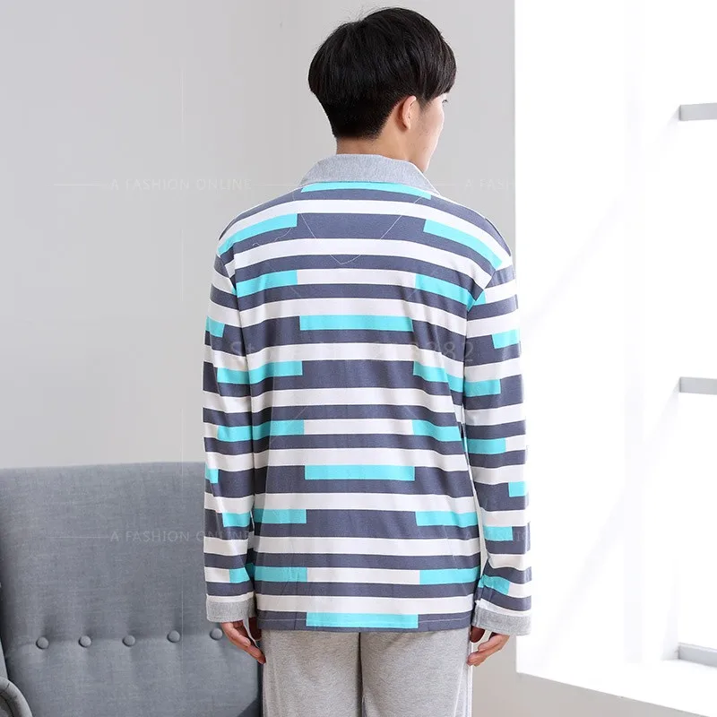 Spring Autumn Casual Stripes Men Pajamas Sets Cotton Cardigan Men's Loungewear Pyjamas Men Sleepwear Plus size 4XL Home Clothing