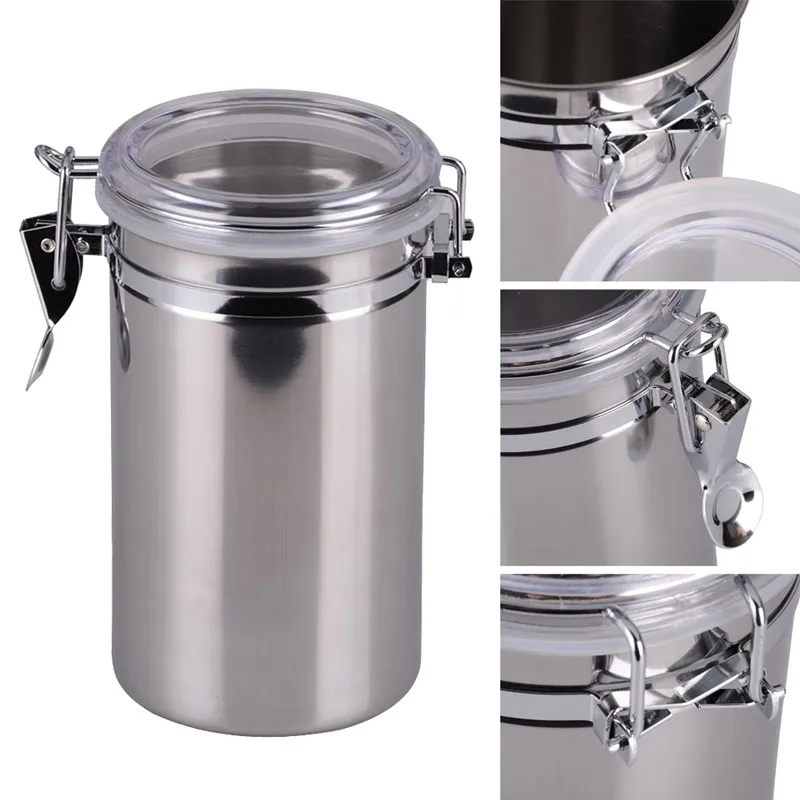 High Quality Stainless Steel Sealed Canister Jar Home Kitchen Coffee Sugar Tea Storage Bottles Jars Free Shipping