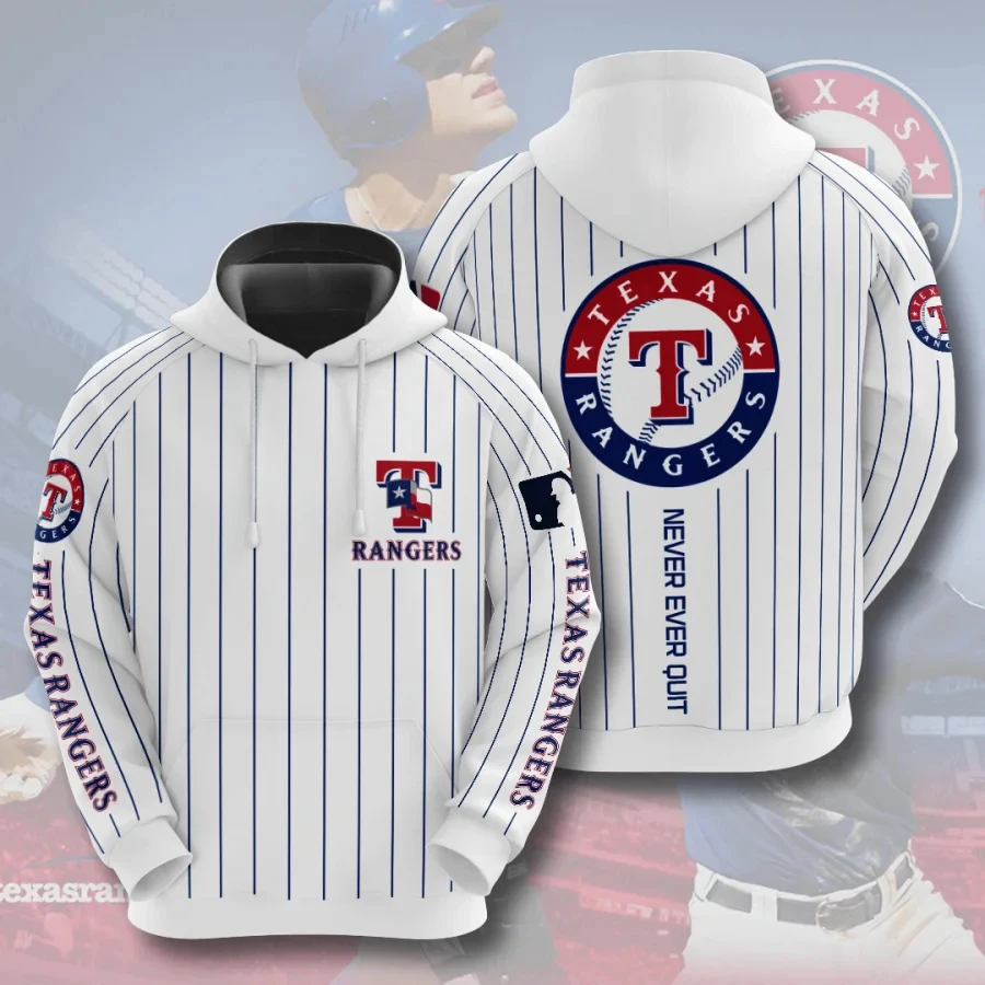 Description: Gear up for the big game with this ultra-cool Texas Rangers Striped Casual Hoodie. The creative design will give you a fresh look. Warm y…