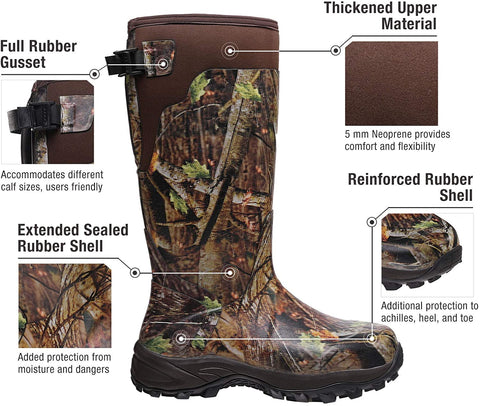 - These 16-1/2” rubber neoprene boots were designed to be the most durable, protective and comfortable boots for active outdoorsmen. Whether you are working, hunting, fishing, camping or even playing outside, these breathable and waterproof boots would keep your feet dry and warm in cold water or mud.