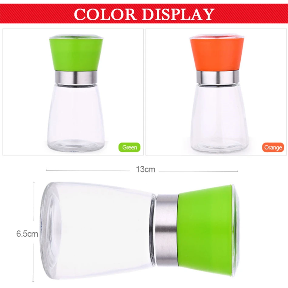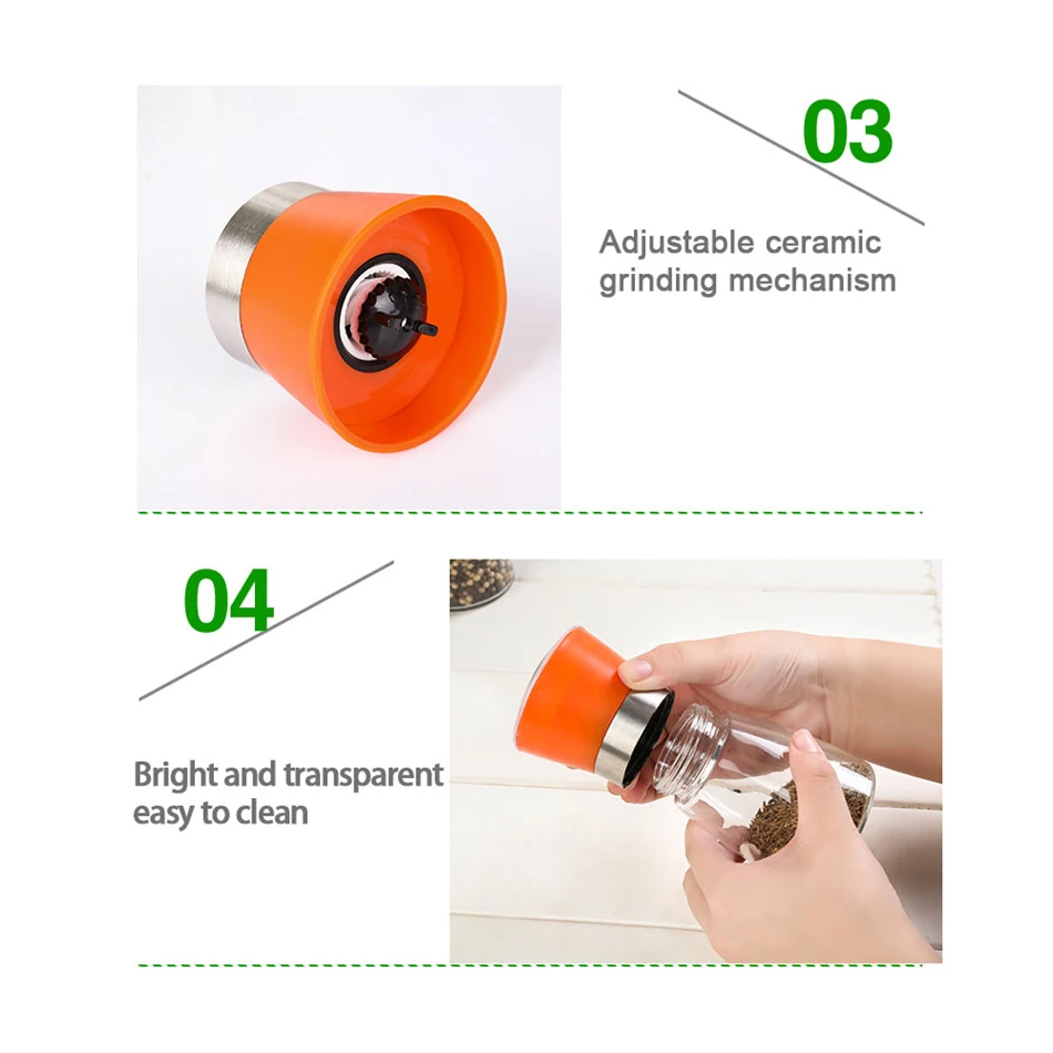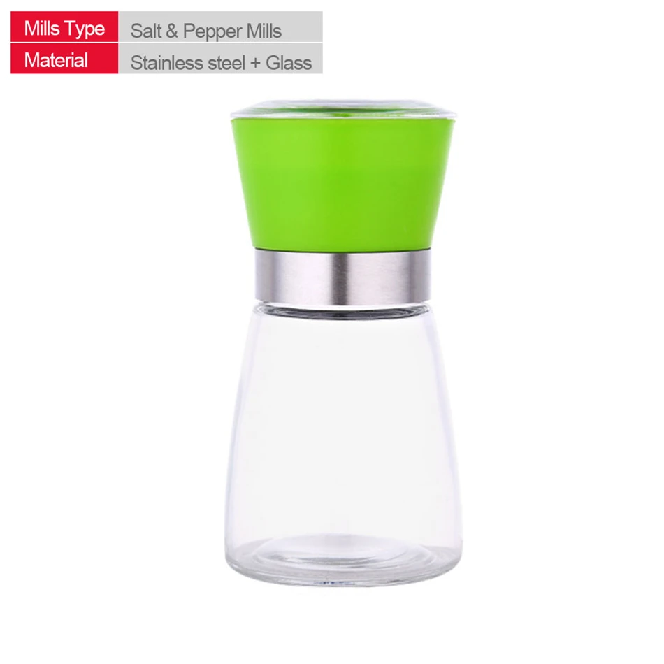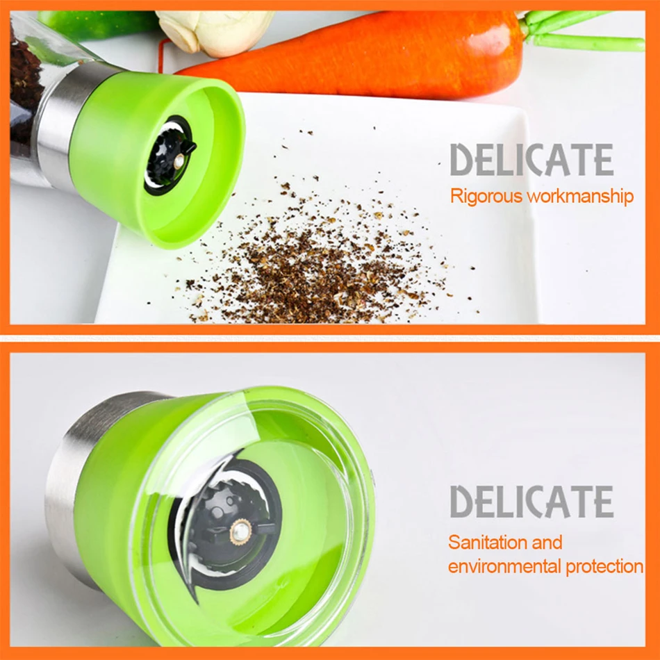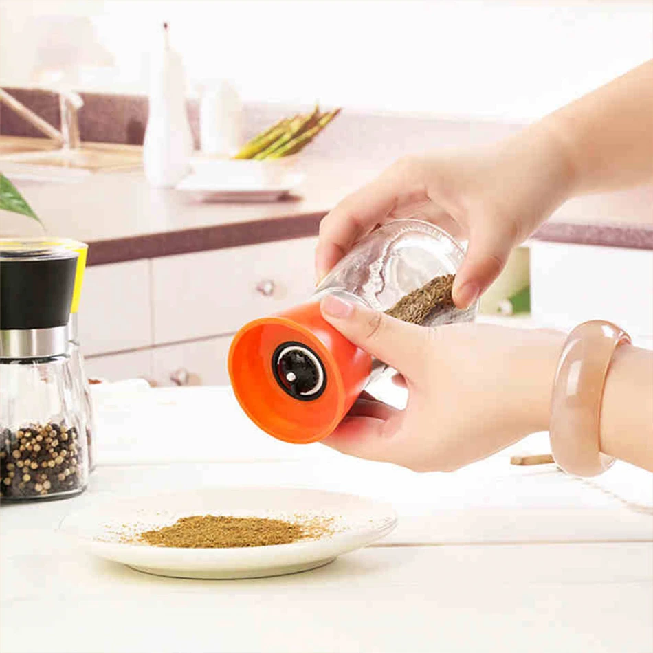 TTLIFE Stainless Steel Glass Pepper Mill Slim Fit Spice Salt Pepper Mill Grinder Seasoning Kitchen Tools Grinding for Cooking