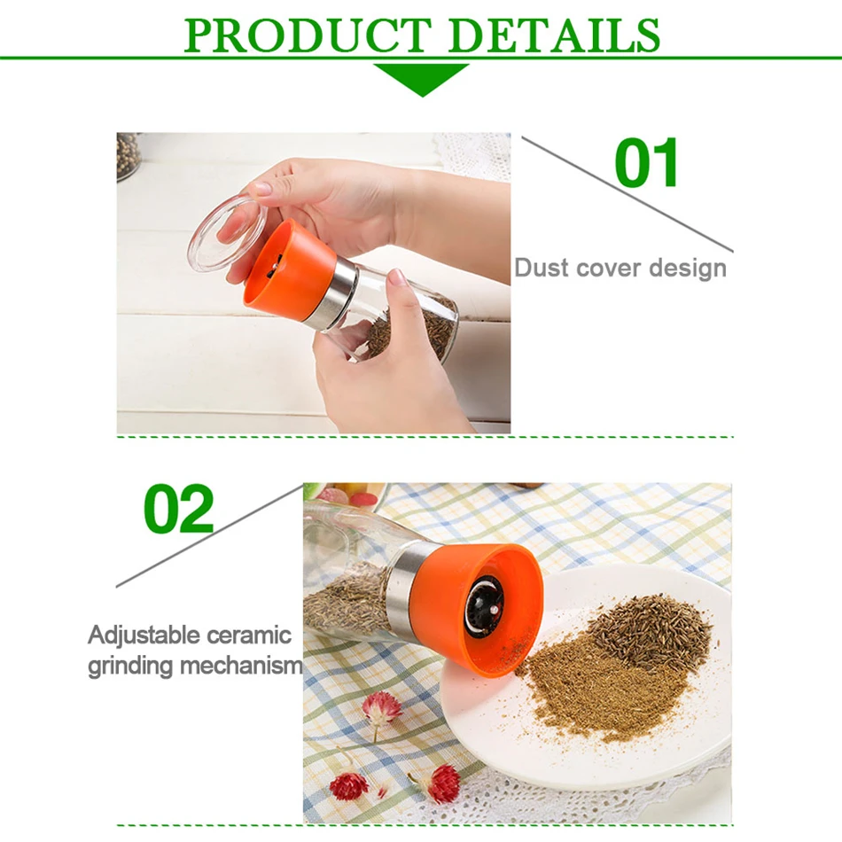 - PREMIUM QUALITY - Our salt and pepper mill has best design. The stainless steel grinders with high quality glass body and non-corrosive ceramic blades are perfect addition to any kitchen.