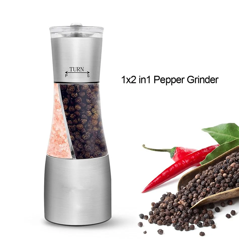 TTLIFE Stainless Steel Manual 2-in-1 Salt Pepper Mill Grinder Seasoning Kitchen Tools Grinding for Cooking Meat Restaurants