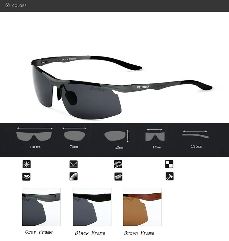 VEITHDIA Brand Logo Designer Aluminum Magnesium UV400 Men Polarized Sunglasses Driving Sun Glasses Goggles 2017 Accessories 6535