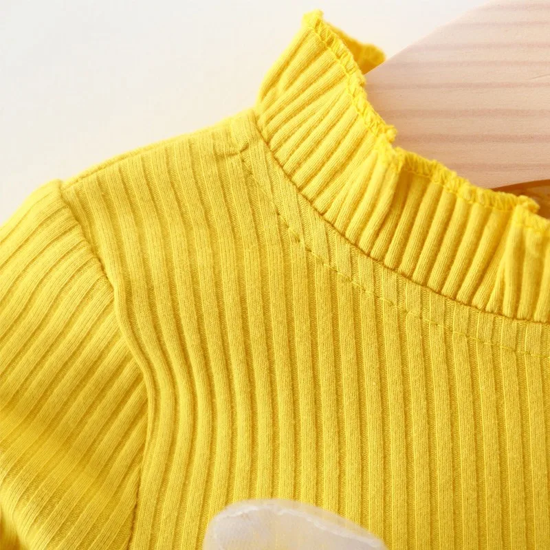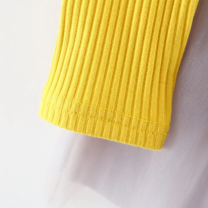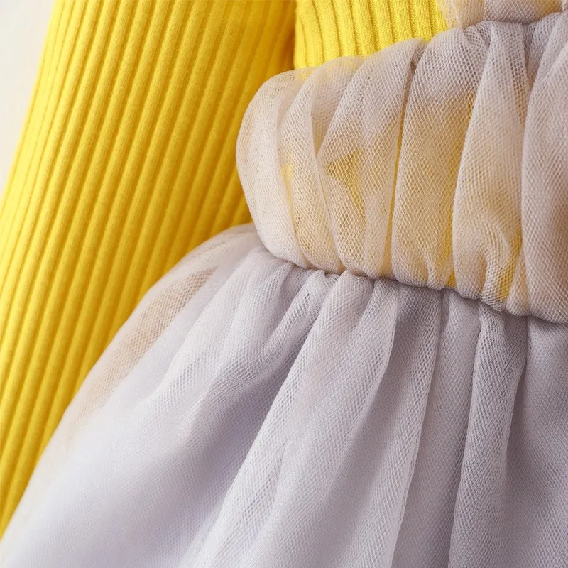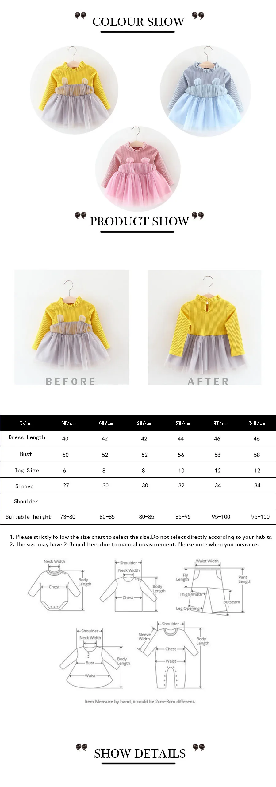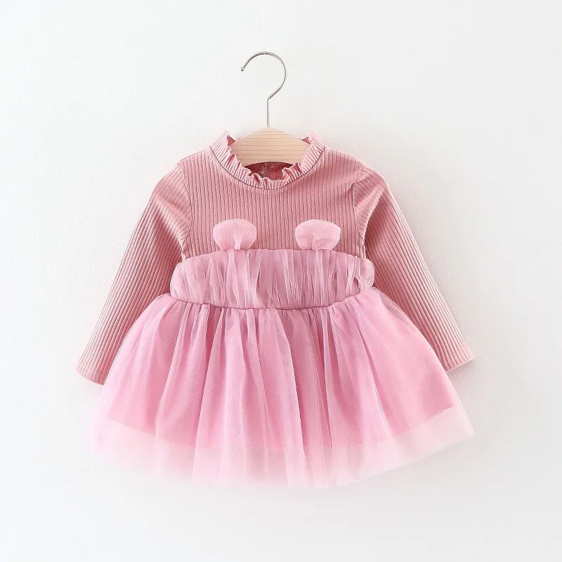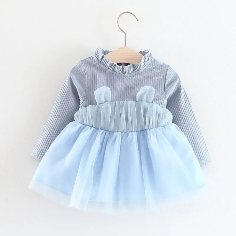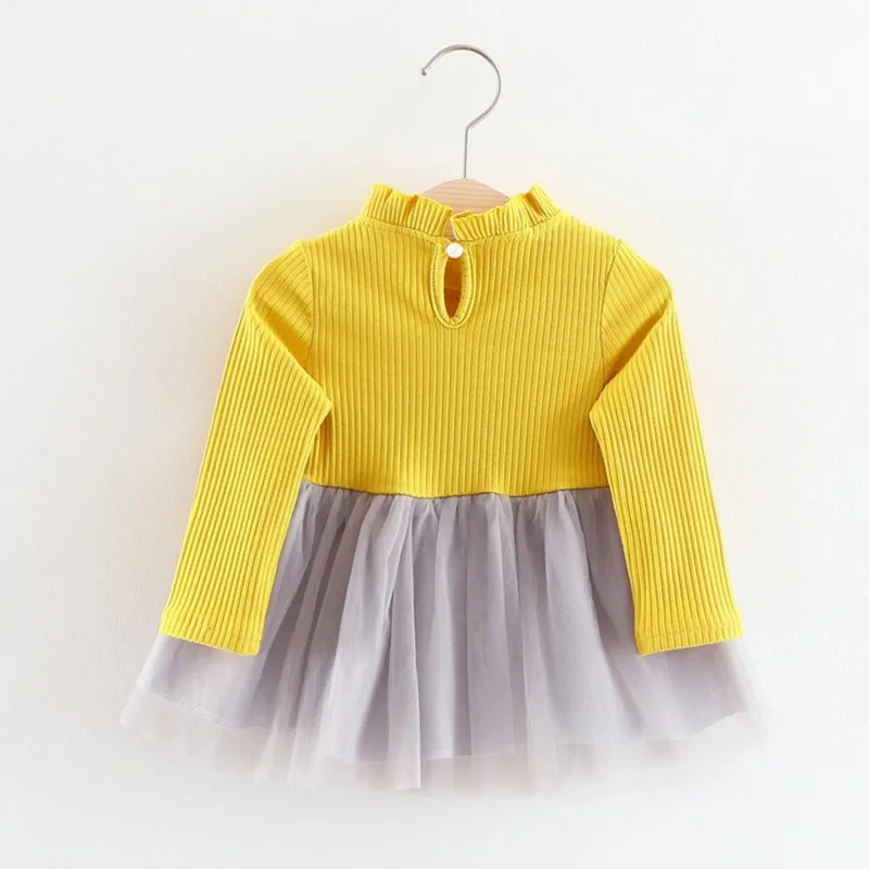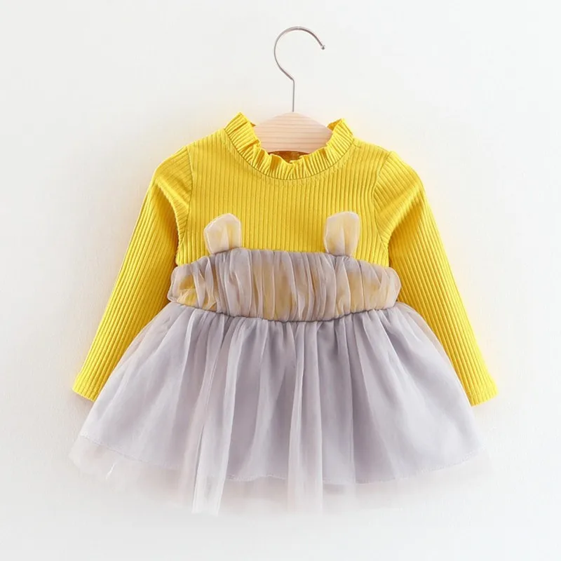 VIMIKID Baby Girl Dresses 2017 Cute Ears Yarn Fold Collar Long Sleeve Stitching Dress for Girl Toddler Clothes Children Clothes