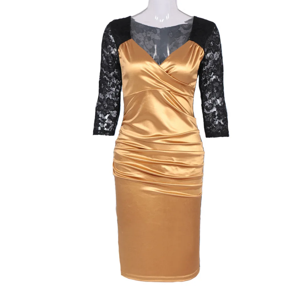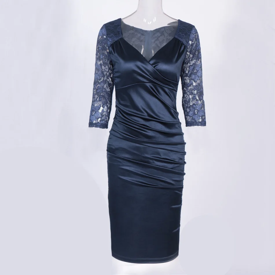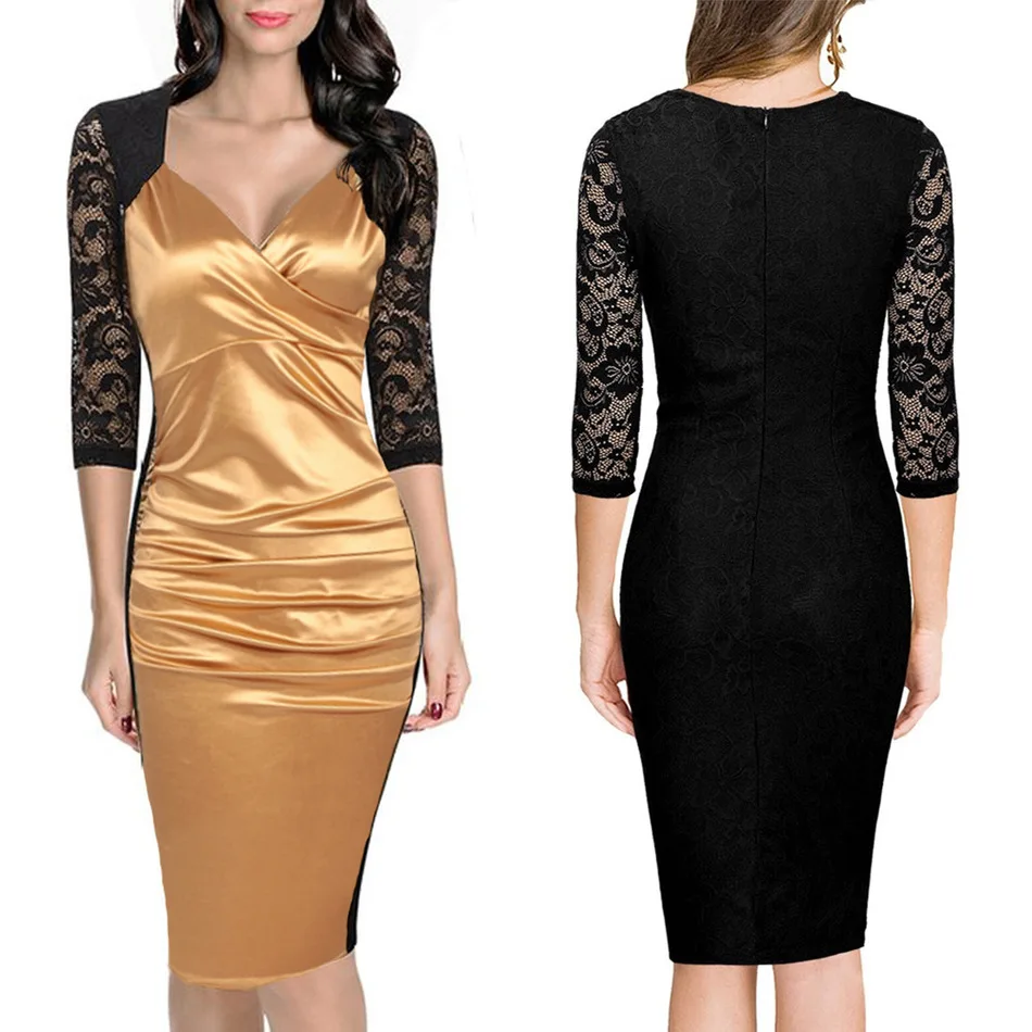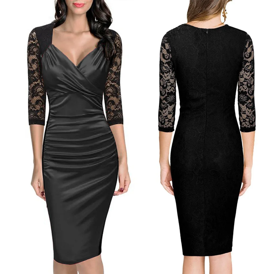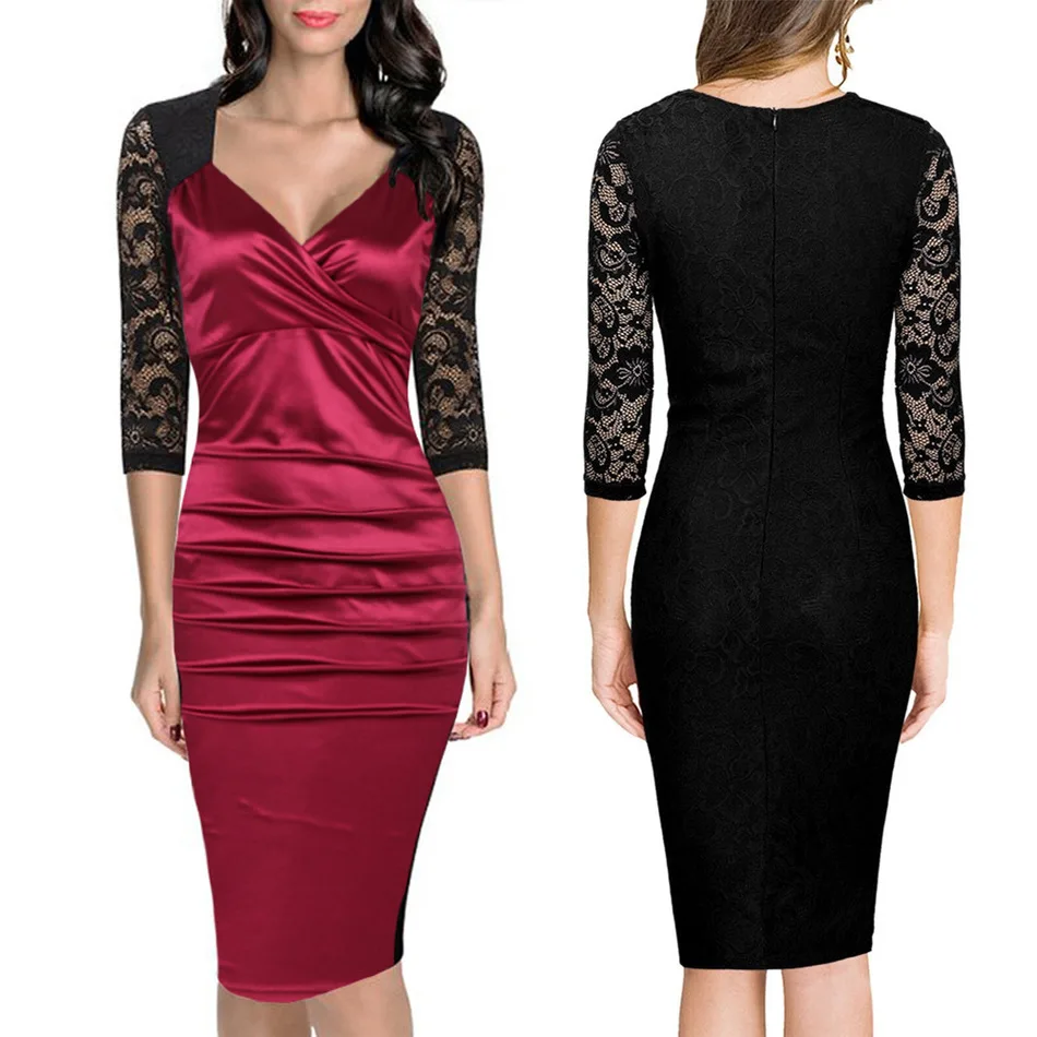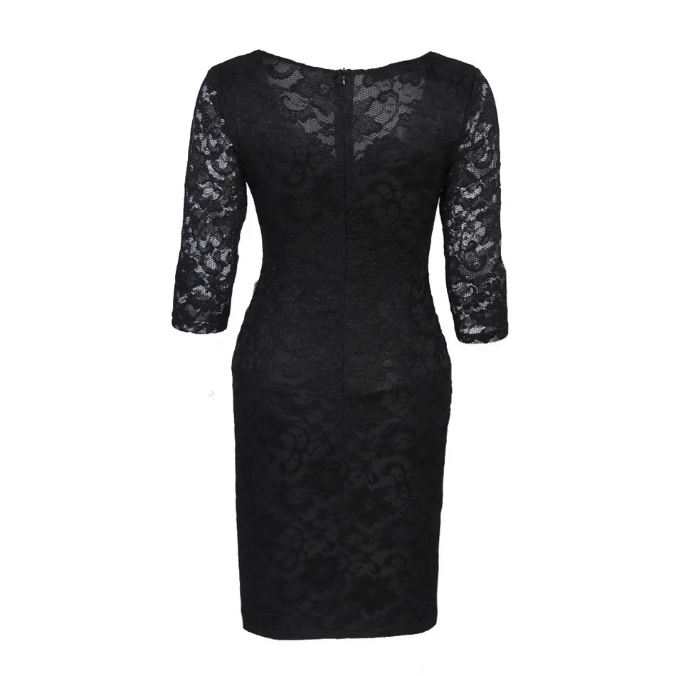 Material: Polyester,Lace;Style: Sexy & Club;Silhouette: Sheath;Sleeve Length(cm): Half;Decoration: None;Dresses Length: Knee-Length;Sleeve Style: Regular;Waistline: Empire;Neckline: V-Neck;Season: Autumn;Model Number: Party Dress;Brand Name: VITIANA;Gender: Women;Pattern Type: lace;Skirt type: Pencil skirt;Sleeve type: Regular sleeve;Sleeve: Cuff/sleeve in five minutes;Clothing placket: zipper;Popular element: Stitching, lace;The fabric name: Polyester fiber;