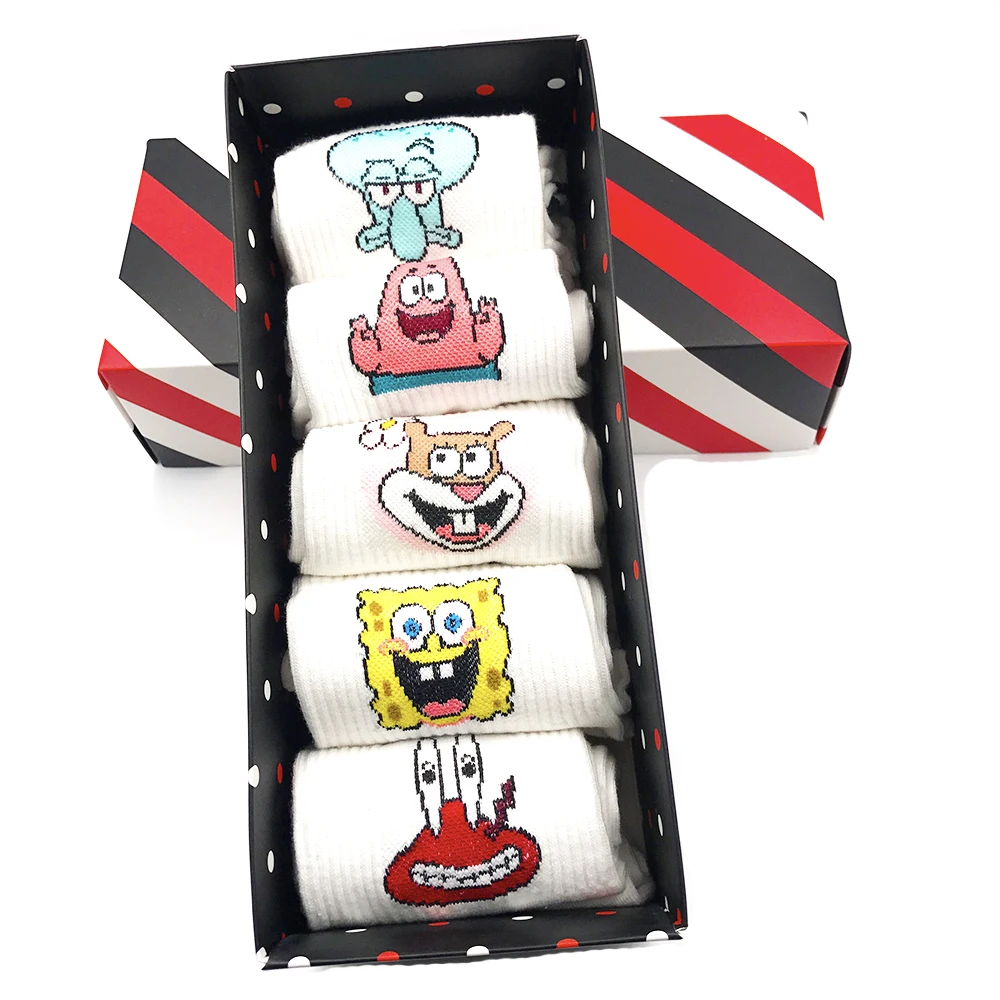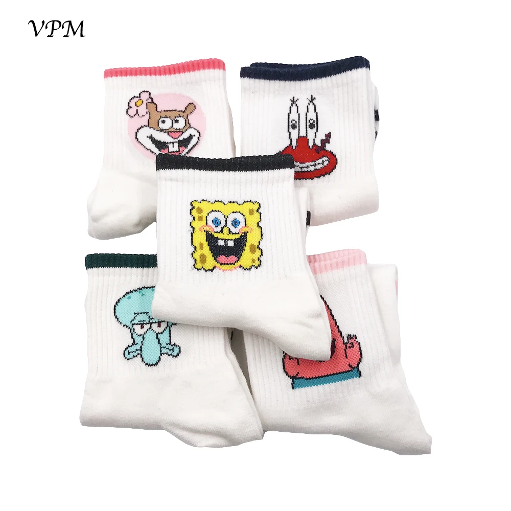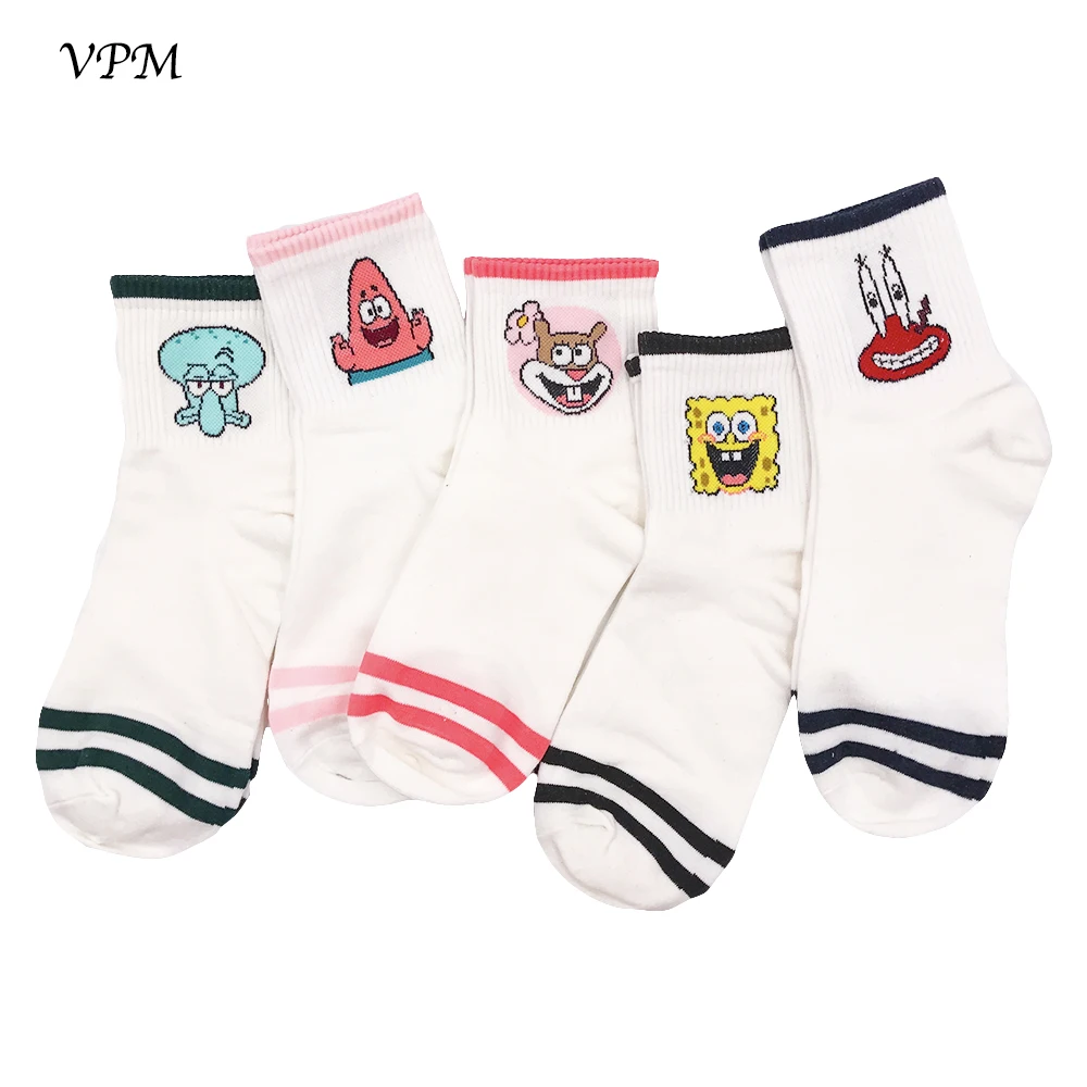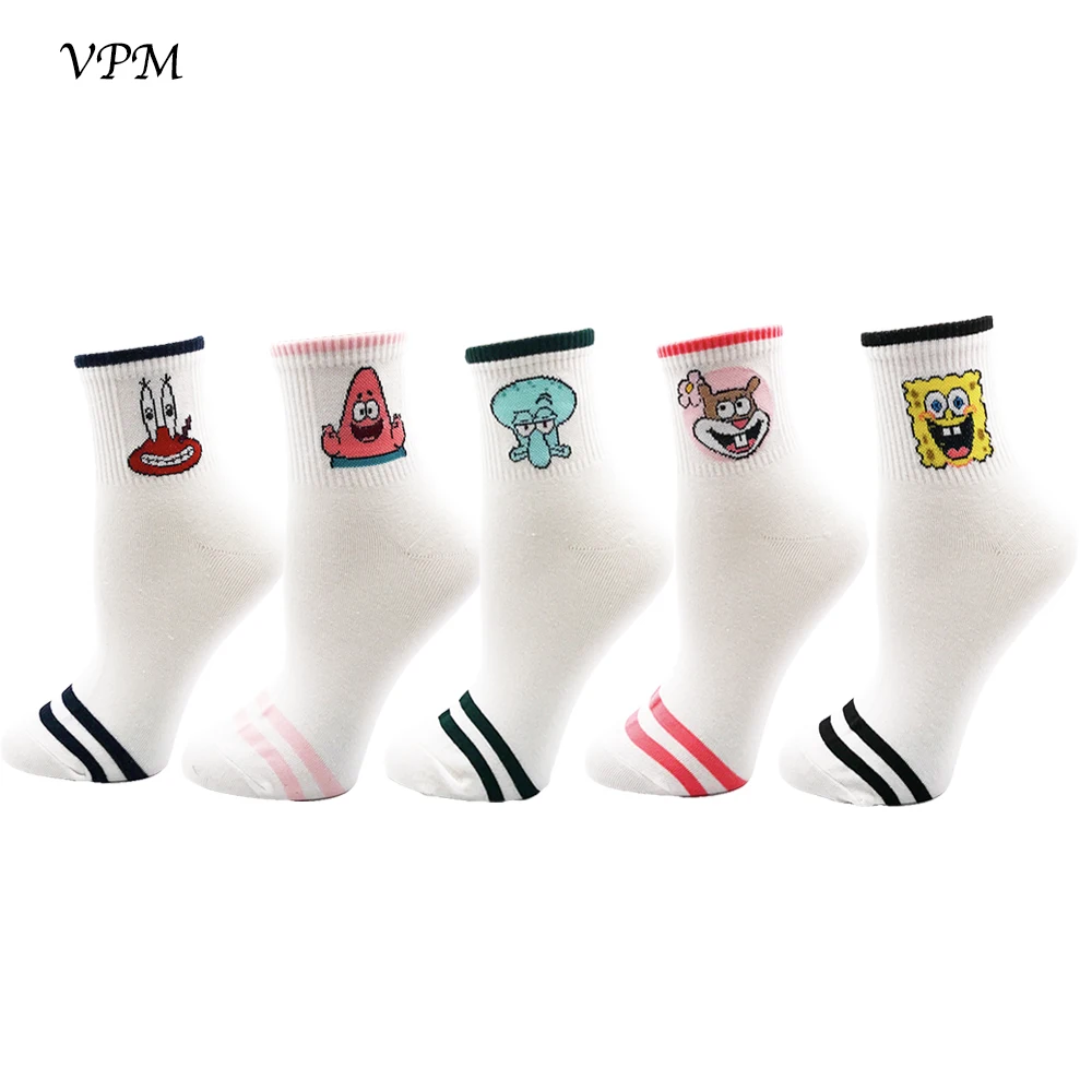 VPM Cartoon Sweet Women Socks White Cute Funny Animals Character Ladies and Female Socks 5 Pairs/Lot