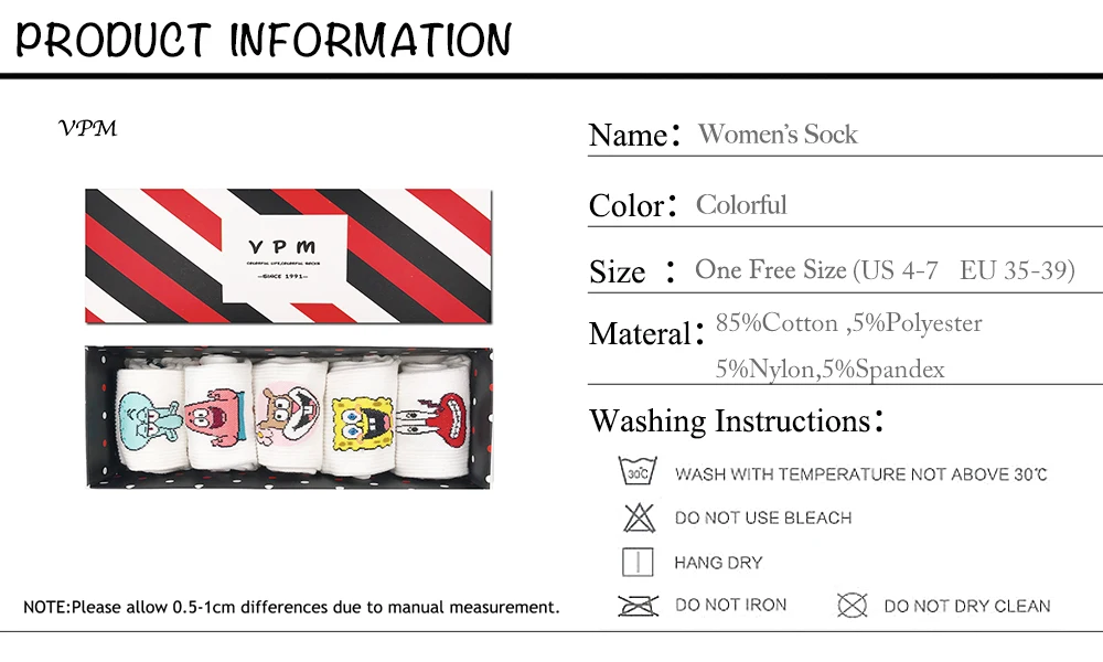 Brand Name: VPM;Material: Cotton,Polyester,Spandex,Acrylic;Thickness: Standard;Model Number: VPM10;Item Length: 23-25cm;Sock Type: Casual;Pattern Type…