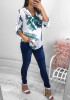 White Leaf Floral Print V-neck Three Quarter Length Sleeve Blouse