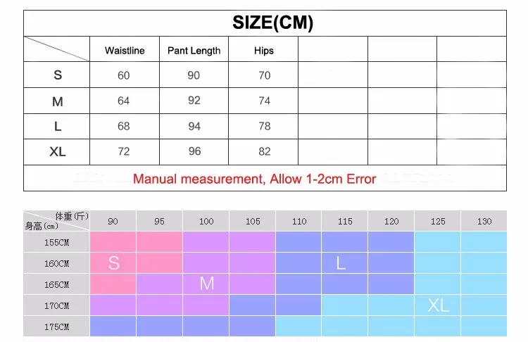 XXL: Length 98CM / Waistline 76CM / Hips 86CM