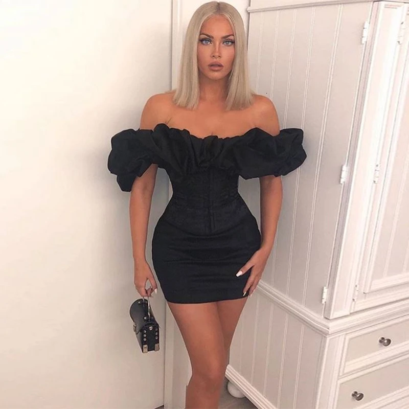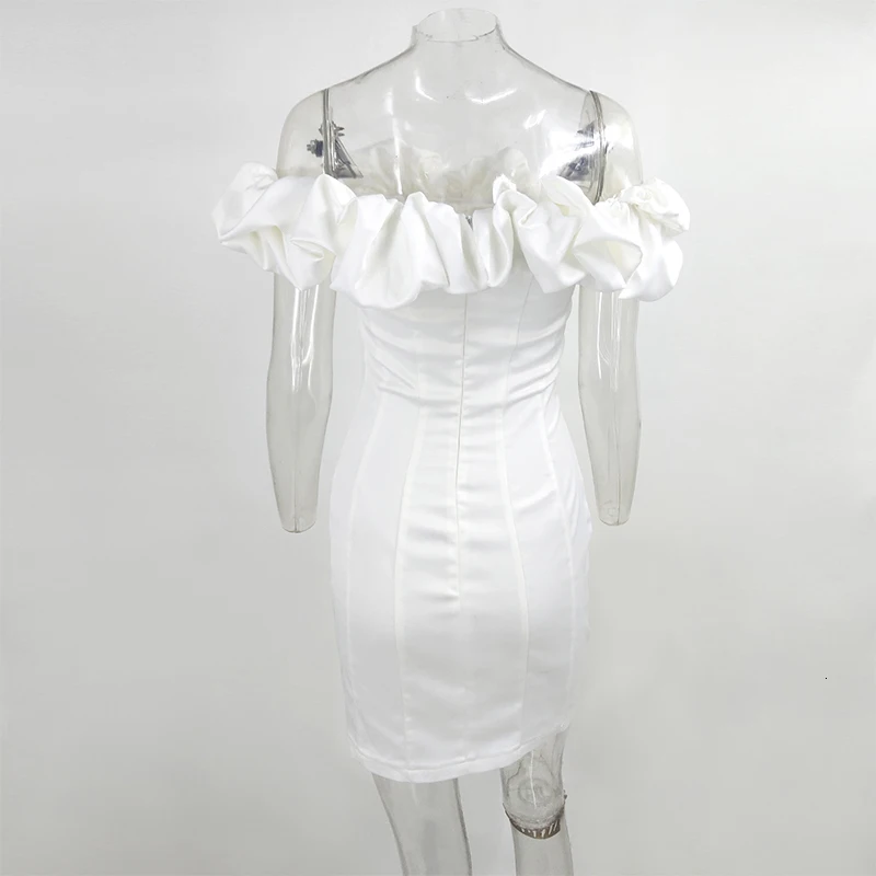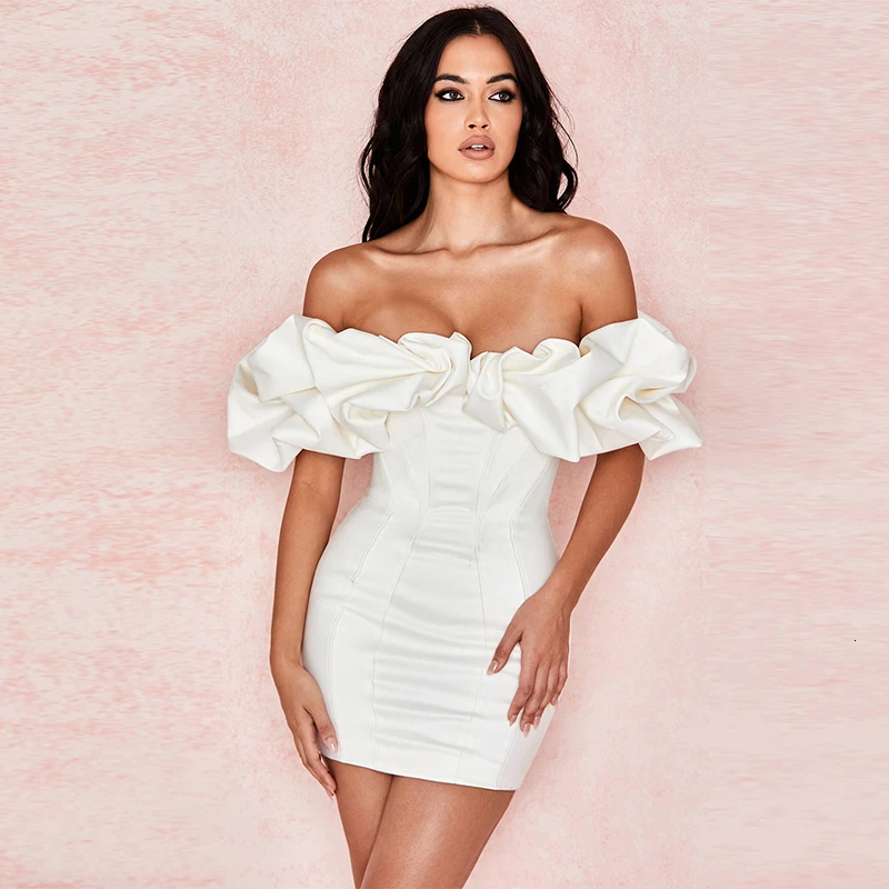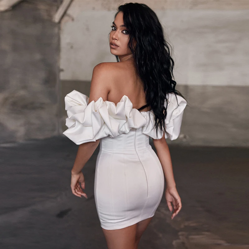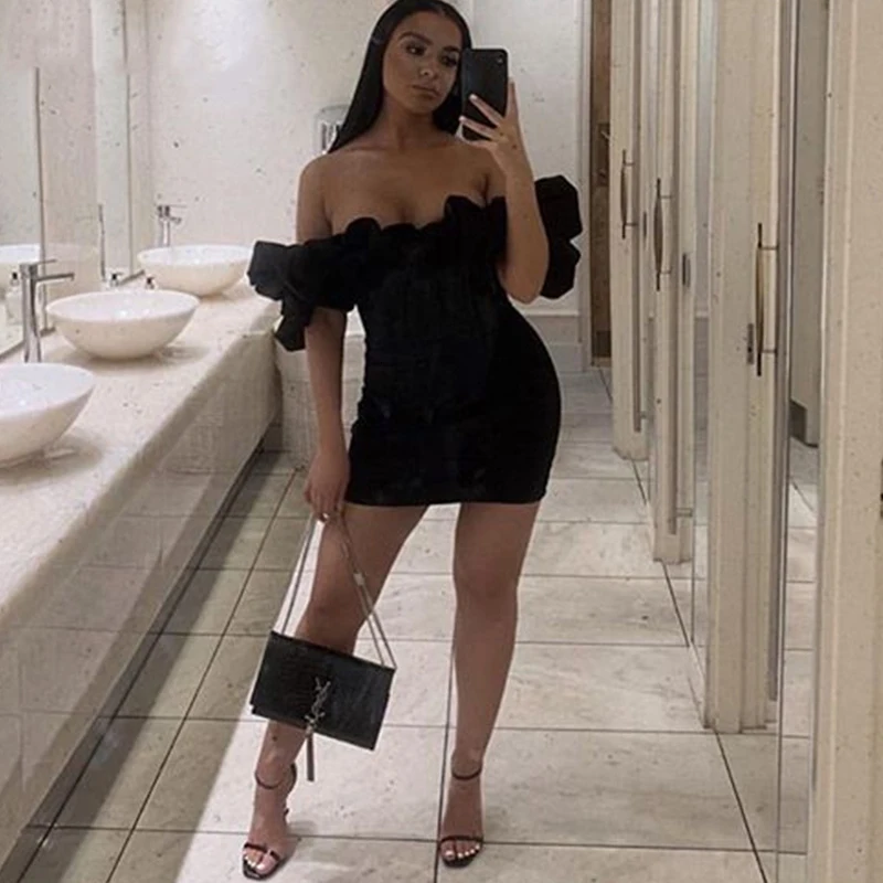 Women Ruffles Sleeve Party Nightclub Sexy Strapless Bodycon Dresses