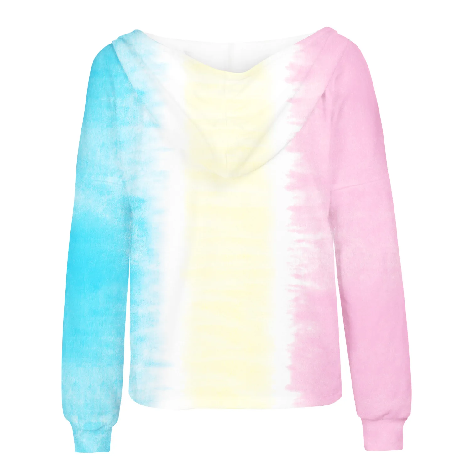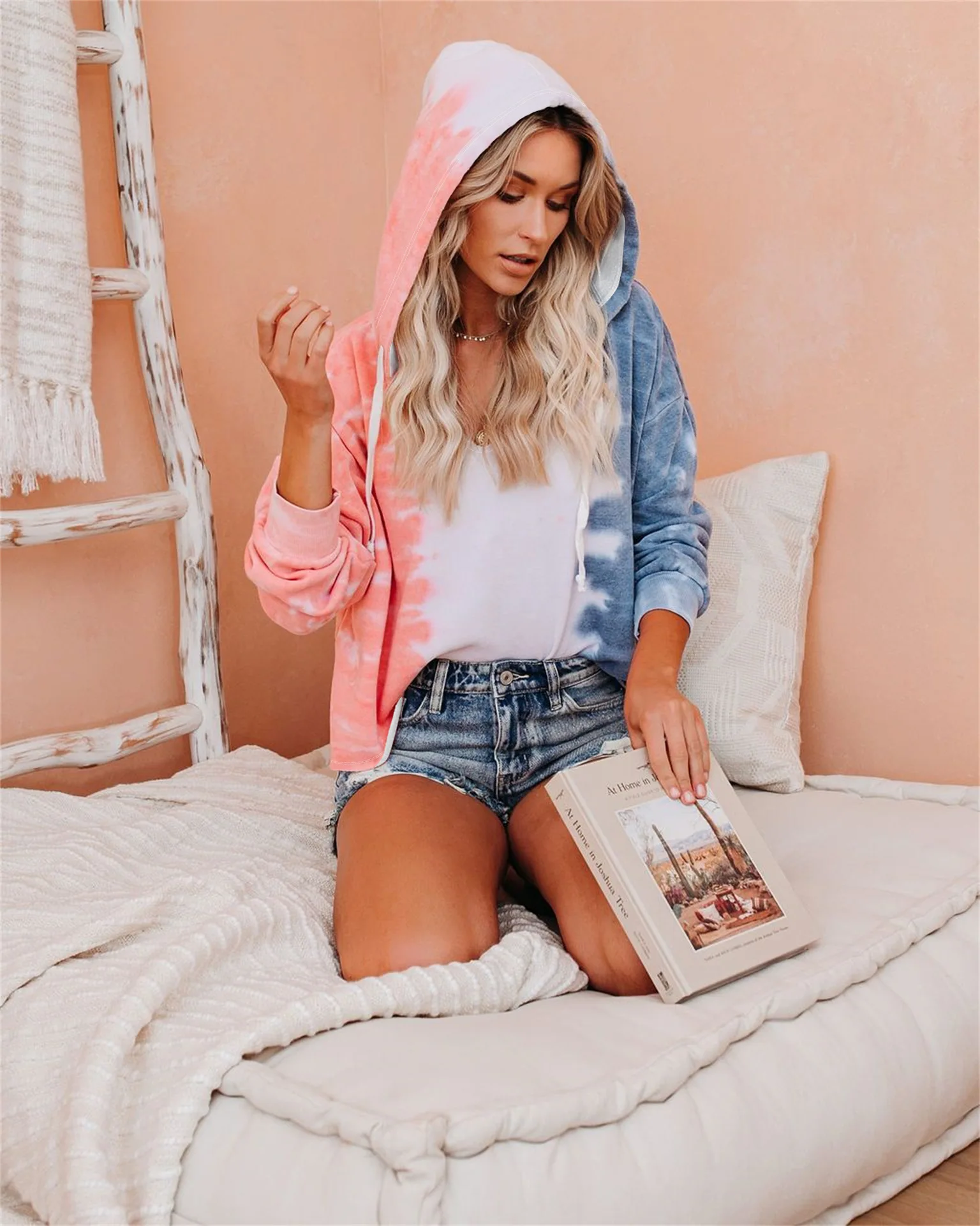 Women's Tie-Dye Hooded Loose Gradient Long-Sleeved Sweatshirt